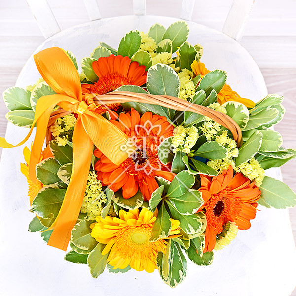 Цветочная корзинка «Оранжевое лето» станет приятным  сюрпризом для любимой,  прекрасным подарком в День рождения маме,  замечательным поздравлением с юбилеем для бабушки, приятно удивит и подарит хорошее настроение сестре, дочери, подруге или коллеге.